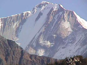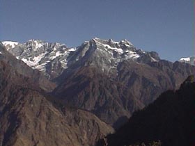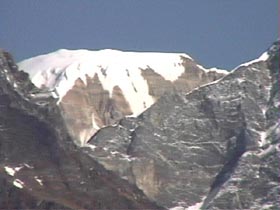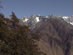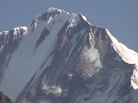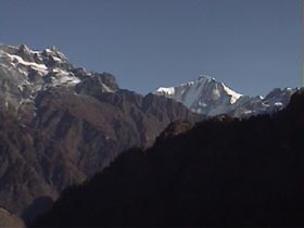| 1月1日 午前4時、発電機を廻し、朝めし!朝めし!とお雑煮をこしらえて5時過ぎ 峠に向けて出発。 薄暗い峠から右ピークのブツシュ帯に入り、展望の良い所を探す。 大木が尾根上に生えていて、なかなか山が見える所がない。 木々の間から見えるが眺望 がもう一つである。小1時間ブッシュをかき分けて、やっと西の方が見える所に…・。 純子さんも、ガイドのウド君も必死で私に続く。アンプルバは子供と留守番。で奴は このブッシュ漕ぎを知っていたのか? 夢中で西南方面を撮り、一旦峠へ戻る。 今度は左の踏み跡を辿る。 100米も上がれば目の前にサイパルと西の台地の山である 6526mが望見。前衛峰の岩峰と岩壁が素晴らしいパノラマを見せてくれた。 あの台地の山はヒマラヤ名峰辞典で吉永はボバイエ、ジェテイボフラニとしているが (本人も?マークを付けていたが…・・。) これで多分間違いかも知れない。 枯葉や竹笹や小枝でそこいらじゅう怪我をしているけど…・・。 満足!満足! 「パパ!もうテントへ帰ろうよ!」と純子さんの声。 テントに戻り、元日は正しく寝正月を…・・。 アンプルバに夕食を任せて、'99年第1日目の私達の豪華な夕食は混ぜご飯と札幌ラーメンのメンイデッシュに、 黒豆とはりはり漬に肉缶を奮発!。アンプルバはベーコン野菜炒めとダラン村の野菜で、おひたしをこさえた。満足!満足であった。 |